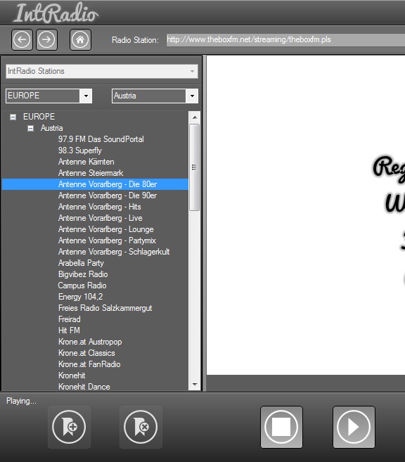 IntRadio is a free online radio player which comes with a built-in collection of over 3000 radio stations from Europe, United States, New Zealand, Australia and Canada. Available radio stations are grouped in categories according to the country that they are from. On top of all that, it also has a recorder, which you can use to record online radio streams to your hard drive.