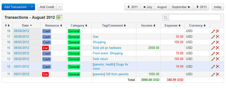 - Transactions tracking – make note of every money transfer that you do
