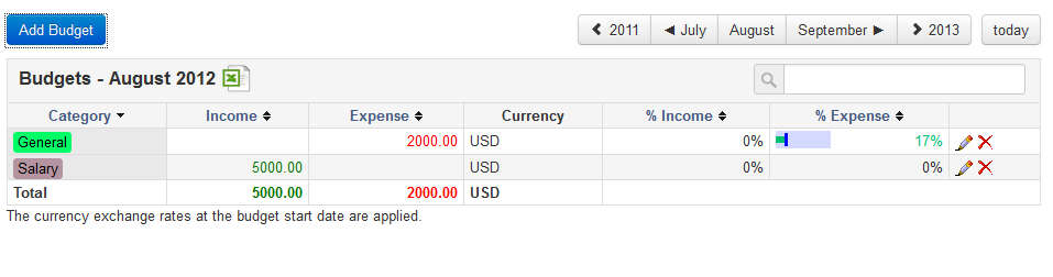- Categories – monitor several different streams of income and expenses