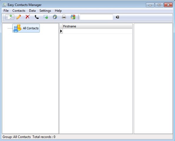 Interface of Easy Contacts Manager is divided up into three columns. The one in the middle will display a list of all the contacts that you’ve added to a certain group. This will only happen though when a group is created and contacts are added to it, which you can do in the left column. Contact information of a selected contact will be shown all the way to the right.
