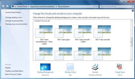 Once you do this, you will able to load these themes through the Control Panel.