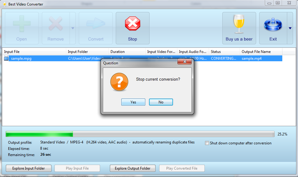 In short, the usefulness of Best Video Converter is undeniable and so is its simplicity and dynamism. The friendliness quotient of the software has increased with ‘Buy us a beer’ option which is a unique way to seek your support to further better the software. Free availability also makes it a must-to-have, especially for video and music lovers.