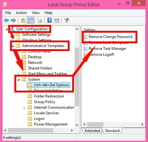 Method 3: Prevent Specific User From Changing Password In Windows 8 Using Group Policy