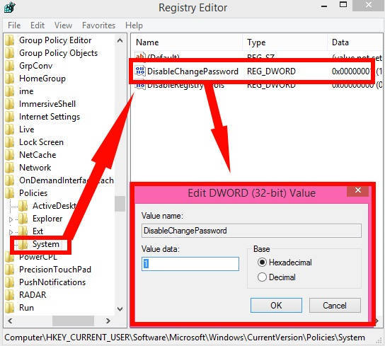 Method 2: Prevent Specific User From Changing Password In Windows 8 Using Registry Editor