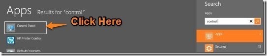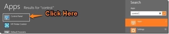 - The first step of this process is to be on the start screen; once you are on the start screen just start typing Control Panel. When it comes up as shown below, just click on it to open up the control panel.