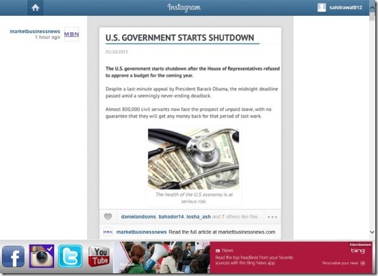 Connecting and accessing Facebook, Twitter, Instagram, and YouTube using this Windows 8 Social Network App: