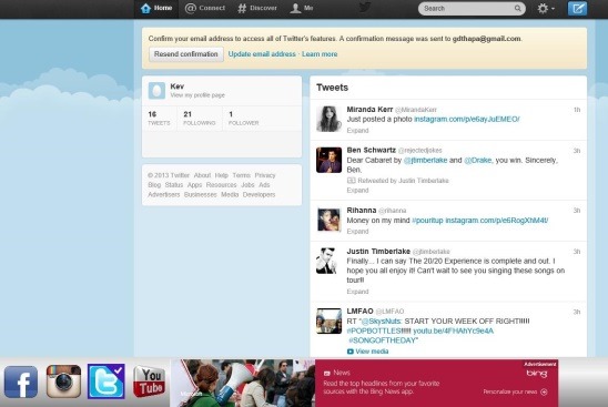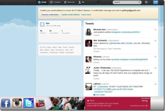 The good thing about the app is, it’s very easy to use. Accessing the social networks within the app is same as with the web browser. So, there’s no need to learn any thing new. Even the interface of these networks is kept same, as you get on web browsers. This gives the users a familiar environment for using this free Windows 8 social network app. The app has just a single screen, with four social network icons at the bottom left side, which can be used to switch or toggle between the supported networks. Simply click on these toggle buttons, to open their respective social network.