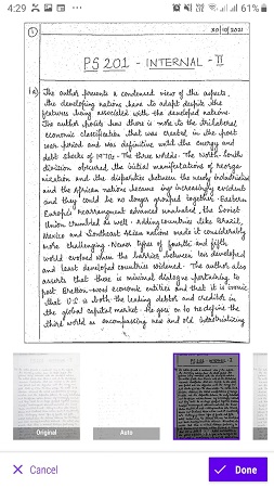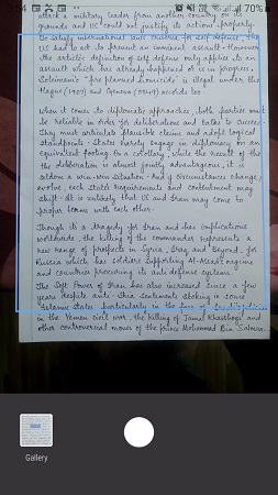 - Scan your handwritten document carefully. Align the document inside the Blue frame for proper scanning and take a photograph.