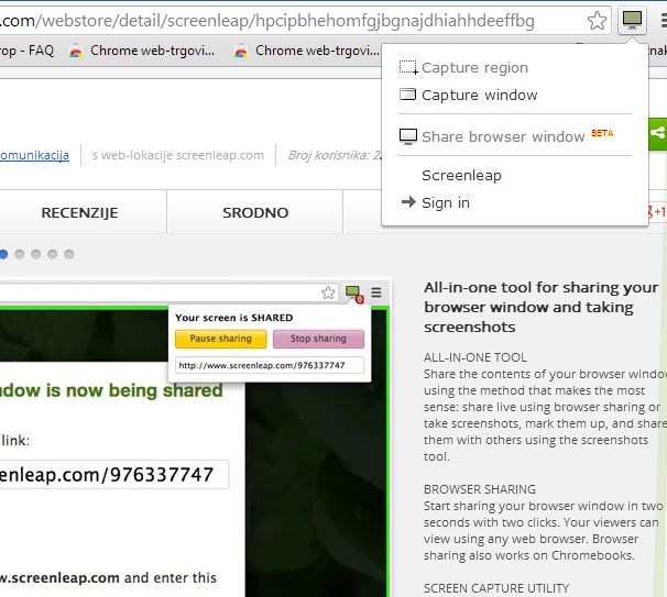 To start sharing your Chrome browser window with other people, you just need to install the extension, activate it by left clicking on its icon in the top right corner and then giving the access link to whoever needs to see your Google Chrome window. Be warned that this one worked kind of laggy for me, but that could be just my internet connection. It might work better for you.