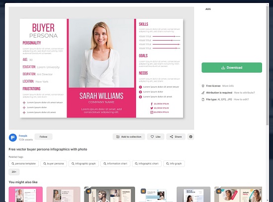 We now explore the last website namely, Freepik, from where you can download Buyer Persona Templates in graphic format files such as JPG, PSD, EPS and more. Just click on the link that we have given below to download the templates.