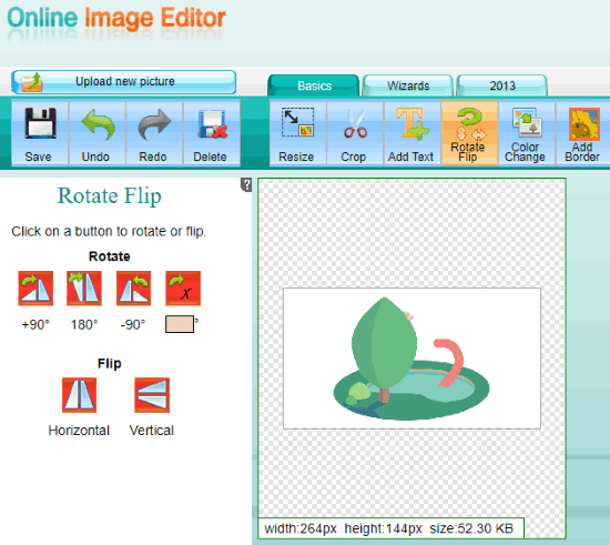Online Image Editor is one of the best websites to flip images on this list. It lets you upload images from PC, Facebook or add an online image to flip it horizontally or vertically. Apart from flipping JPG, PNG, and other common format images, it also lets you flip an animated GIF. This is a unique feature not provided by many other image flipper websites.