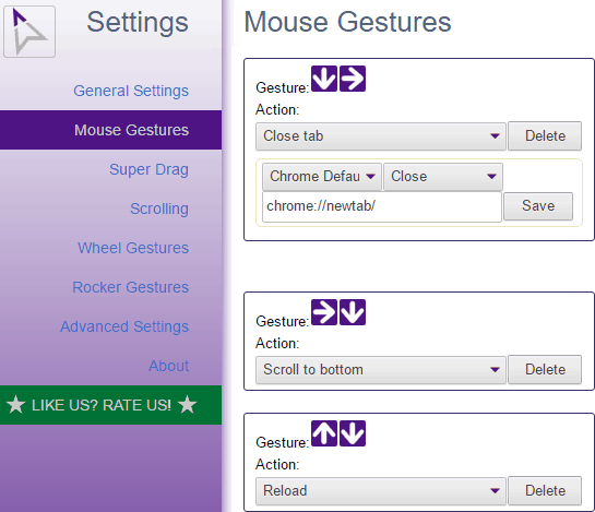 Note: These Chrome gesture extensions will not work on default Chrome pages like History, Downloads, Settings, etc.
