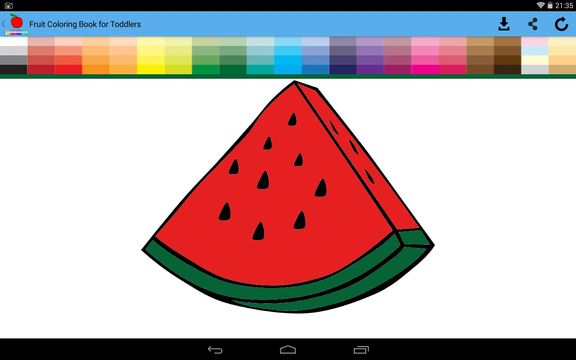 Fruits Coloring I liked because it lets you choose between the paint bucket tool and the brush tool. Paint bucket is what most of the other fruit coloring apps that I tested offer.