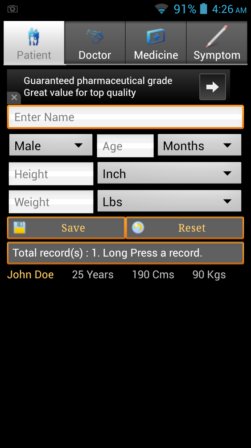 Basic info like patient name, age, height, weights, medications, symptoms, treatments, etc can be typed in and kept using this health records management app.