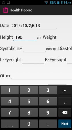Entire interface basically looks like a table, where all the important information that you need keep for regular checkups (blood pressure, blood sugar, heart rate, etc) can be kept.