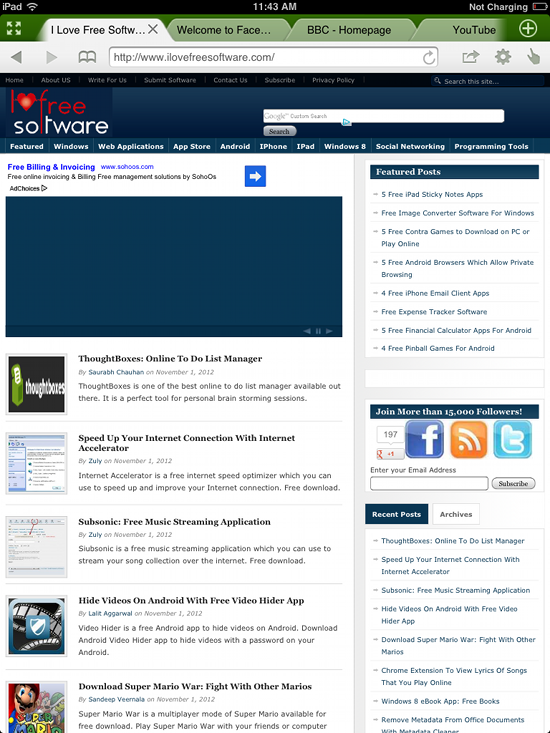 This a really awesome feature that converts webpages to a cool looking magazine interface, so that you can enjoy reading them in a simpler and intuitive interface. I really loved this feature of this free browser for iPad. Webzine contains quite a bit of popular websites. Also when you open up the more section you will be able to browse through two sections: the featured and what’s hot. In What’s Hot section you can browse by categories like art & design, living, business, Science & Tech etc.