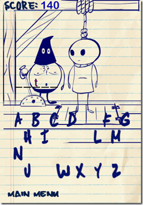 The second hangman game for iPhone is Hangman Free. This game lets you play hangman in two modes: Single player and Multiplayer. You can also choose the word list from following categories: Easy, Standard, Hard, Animals, Food, Geography, Holidays, SAT, and TOEFL. The game has an interface similar to a crayon drawing. It looks like someone is making a crayon drawing while on the other end a man gets hanged due to the mistakes you make.