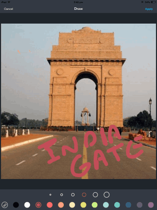 - Draw: This option lets you draw anything on the photo. Choose color and start drawing, while eraser is present at bottom left corner.