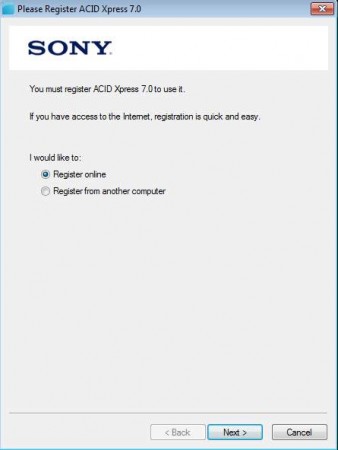 Software is free, well at least the free version is, but in order to download it you’re gonna have to register. This program is sponsored by Sony, and after registering for download, you’re gonna have to register once again after you launch ACID Xpress for the first time: