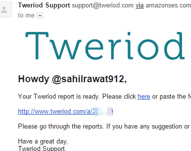 Once you have provided the details, you need to wait for some time to get the report in email. It could take up to one or two hours. Report generating process depends on total number of followers you have. As soon as the report is generated, email will be sent to you with report link.