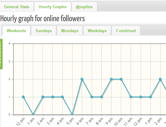 - ‘General Stats’ shows time for weekends, Sundays, Mondays, and Weekdays, when most of the tweets are posted. Apart from this, it also shows the most common time when your followers remain online.