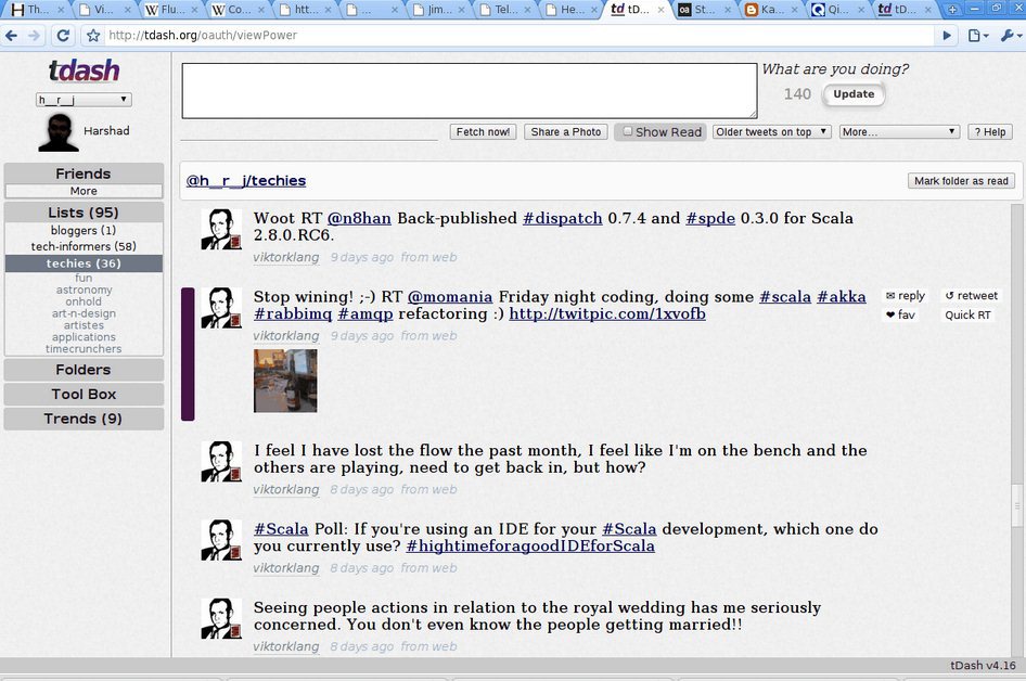 To get started with this online Twitter client, visit tDash.org and click “Sign-in to your dashboard” in the home page. By clicking “Authorize app”, you can now read tweets from your timeline. Your application also allows you to see people you are following, suggest people you might want to follow, post tweets and make changes in your profile.
