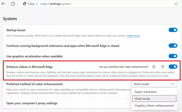 One of the most impressive aspects of Edge’s “Enhance” feature is “Super Resolution” which can upscale videos to enhance their quality. However, there are certain requirements for this feature to function properly.