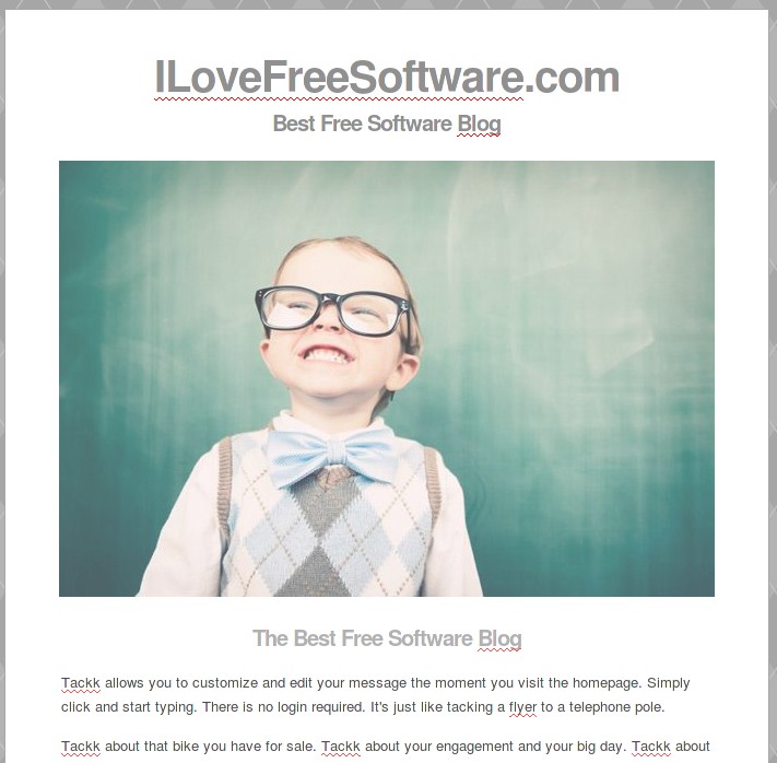 Tackk is a free online service which you can use in order to create pamphlets, fliers, leaflets, circulars, basically informational bulletins of all shapes and sizes. Everything is done online, and great thing about Tackk would be the fact that this free service doesn’t require registration in order to be used. You also get a very feature rich toolbox where you can change and format text, add images, and after all that, the created leaflets and pamphlets can be shared online.