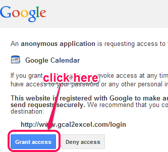 Step 2: Sign in to your Google account. If you are already signed in with another account, then you have to sign out, and sign in with desired account. After sign in, you have to authorize Gcal2Excel access to your Google account.