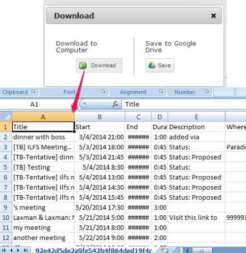 Before generating the output, you can also preview the output list, if you want. Download box provides you option to download output file to PC or to your Google Drive. Select the required option and grab your Google Calendar’s list.