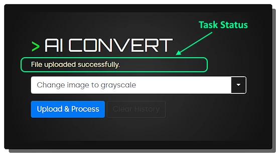 To use the tool, you have to select or type a command first. Then you can upload the file using the “Upload & Process” button. Right below the name, it shows the task status in text covering upload, process, conversion, etc. Upon successful operation, it downloads the final file directly. This is all easy however the tool takes extra time to upload the image and process the command on it. This is understandable for complex tasks including audio and video. But sometimes it takes over a minute just to rotate an image. By that time, I could have used a dedicated program to manually perform the same operation. This extra processing time is the main drawback of this tool.
