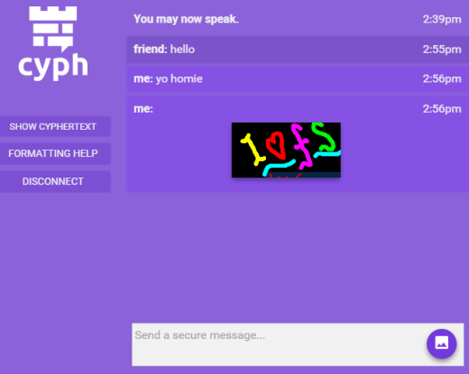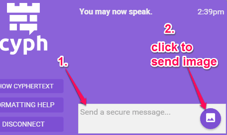 Cyph is a free website for secure chat and image sharing. So, you can chat as well as send images securely to your friends using this website. All your chats and images are encrypted, so that no one can trace the conversation started between you and your friend. However, I didn’t find what kind of encryption is used by the website.