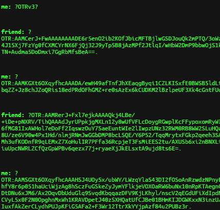 In screenshot below, you can see how your conversion is visible to outsiders. You can check it yourself by clicking on SHOW CYPHERTEXT option available in your chat room. This is not based on actual conversation, it is just an example.