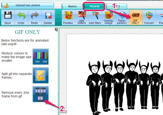 This online image editor comes with a special feature to process GIF images. It can automatically remove every 2nd frame from your GIF image. Unfortunately, you can’t select desired frame to delete, but it is good to quickly remove every 2nd frame and reduce GIF size.