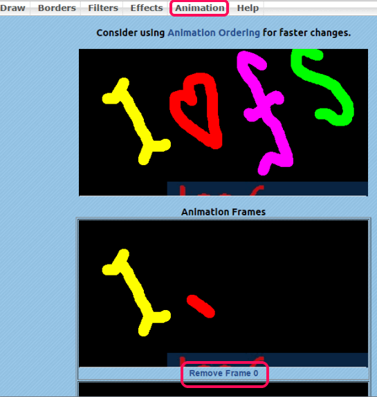 This website also supports various animation effects to enhance your GIF. Apart from this, you can also crop, resize, rotate, and add text to your GIF. After uploading your GIF, you need to click on …More Animations option available under Animation menu. After this, you will find Show Animation Frames option that will help to remove frames from GIF.