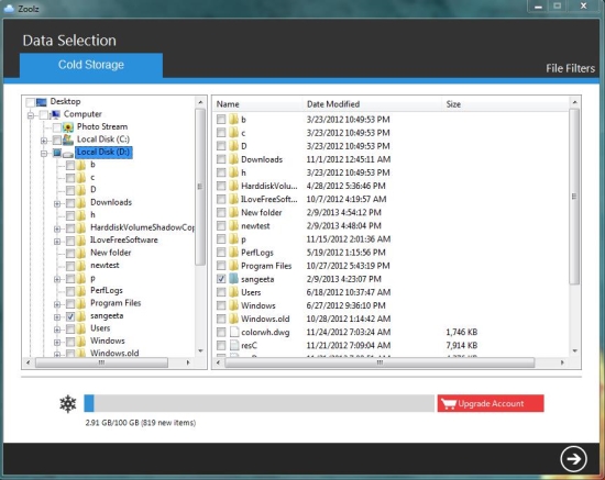 Zoolz works on a unique approach of “cold storage” for safe-keeping your data. This lets you upload unlimited data from your system to your cloud account, some of which will be immediately available and some remains “cold”. The cold files can be accessed by sending a request to the server which will send you a link after 3-5 hours using which you can download files to your system.
