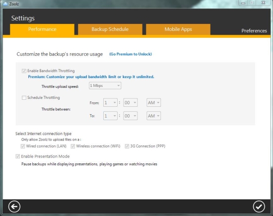 - Allow user control over setting backup schedules, upload speed limit, and more.