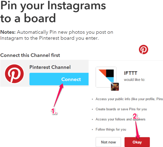 Step 2: Connect your Pinterest account (channel) with IFTTT. It can be done by signing in to your Pinterest account and authorizing the IFTTT website to access your account.