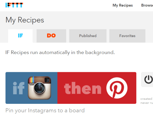 In the screenshot above, you can see a recipe added by me which connects Pinterest and Instagram accounts.