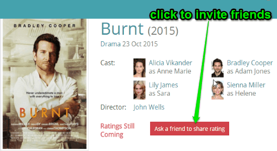 Find a movie and open its info. At the bottom, you will be able to see an option ” Ask a friend to share ratings”. Click the option to invite friends to recommend or discuss movies and share ratings. The following screenshot shows how to invite friends.