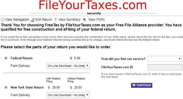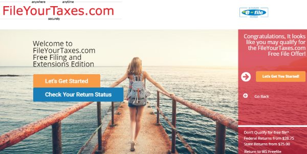 FileYourTaxes is a website which lets you file tax online for free if you qualify the eligibility criteria given on the website. This website is also a part of the IRS free file alliance. Hence, you ca trust this website with your information. For free federal return your AGI (adjusted gross income) should be between $9,000 to $66,000 or if you are a active duty military personnel then you qualify.