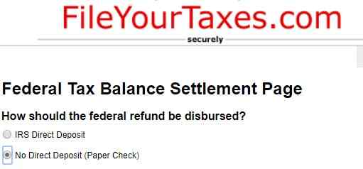 Then you will be asked to choose how you would like to get your tax refund back. You have two options, the refund can be directly deposited in a bank account, or you can get a paper check mailed to your address. Choose accordingly and continue.