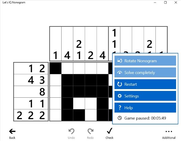 Nonogram games also show you a grid like in Sudoku. Now you have to either color the cells in the grid or leave them empty depending upon the numbers written on the side of the grid. Once you are able to color the appropriate cells a hidden picture is revealed to you. The game only sounds difficult until you get a hang of it. You do need to put in all your focus as one mistake might spoil the game for you. We searched the Windows 10 store and found some nice Nonogram puzzle game apps. This article will cover all these Nonogram puzzle apps which are free to download and play. So let’s look at these free Windows 10 Nonogram logic puzzle game apps below.