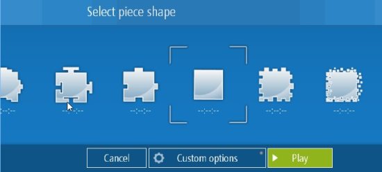 You can select the easy mode which has 24 puzzle pieces, or choose the normal mode with 35 puzzle pieces, or the hard mode with 54 puzzle pieces. As soon as you choose a difficulty mode a pop up screen will come asking you to choose the shape of the puzzle pieces. This can be seen in the screenshot below.