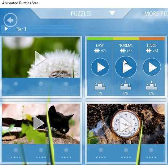 Animated Puzzles Star is a free Windows 10 jigsaw puzzle game app with animated pictures. Like all jigsaw puzzles you get pieces of a picture which you have to put together, only with this app the pictures are animated. So the animation adds to the fun of the game. You can also choose the difficulty level of the puzzle from easy, normal, and hard.