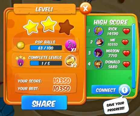 When you complete a level, you will get a level up screen like the one shown in the screenshot above. Here you will see your total score and the number of stars you have earned.