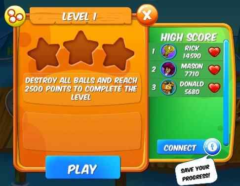You are shown your level objective on the left side and the right side shows highest scorers of this level. Go ahead and click the play button to start the game and the game play screen will come in front of you as shown in the screenshot below.