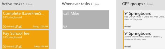 After adding, go ahead and save your task and you will be taken back to your home screen. Now your added task would start appearing in the live timeline, and active tasks. The GPS location that you selected will start appearing in the GPS groups tab and tasks with out a deadline will appear under whenever tasks.