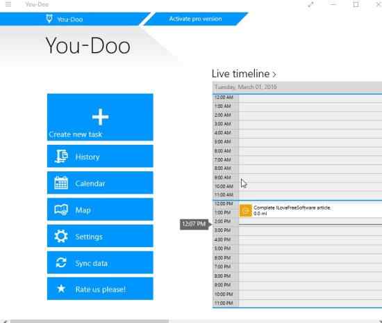 You-Doo is a good app to get task reminders when you are close to a location. This will make sure that you will never forget a task by adding a Geo reminder to it. The pro version of this app has some good features like task sharing, device syncing, driving directions to a location, cloud saving, export to outlook, etc. So if you find this app helpful, then you can upgrade to avail these additional features. But I was quite satisfied with the free features as well.
