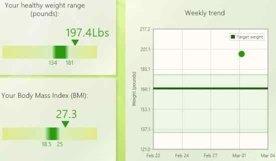 The weight will be displayed on a scale showing your weight and what your healthy weight range is. Similarly, your current BMI is displayed along with a range of healthy BMI that you should be in. This can be seen in the screenshot above. You will also get graphs to see your weight and BMI trends. You will get weekly, monthly and yearly graph charts to check out.